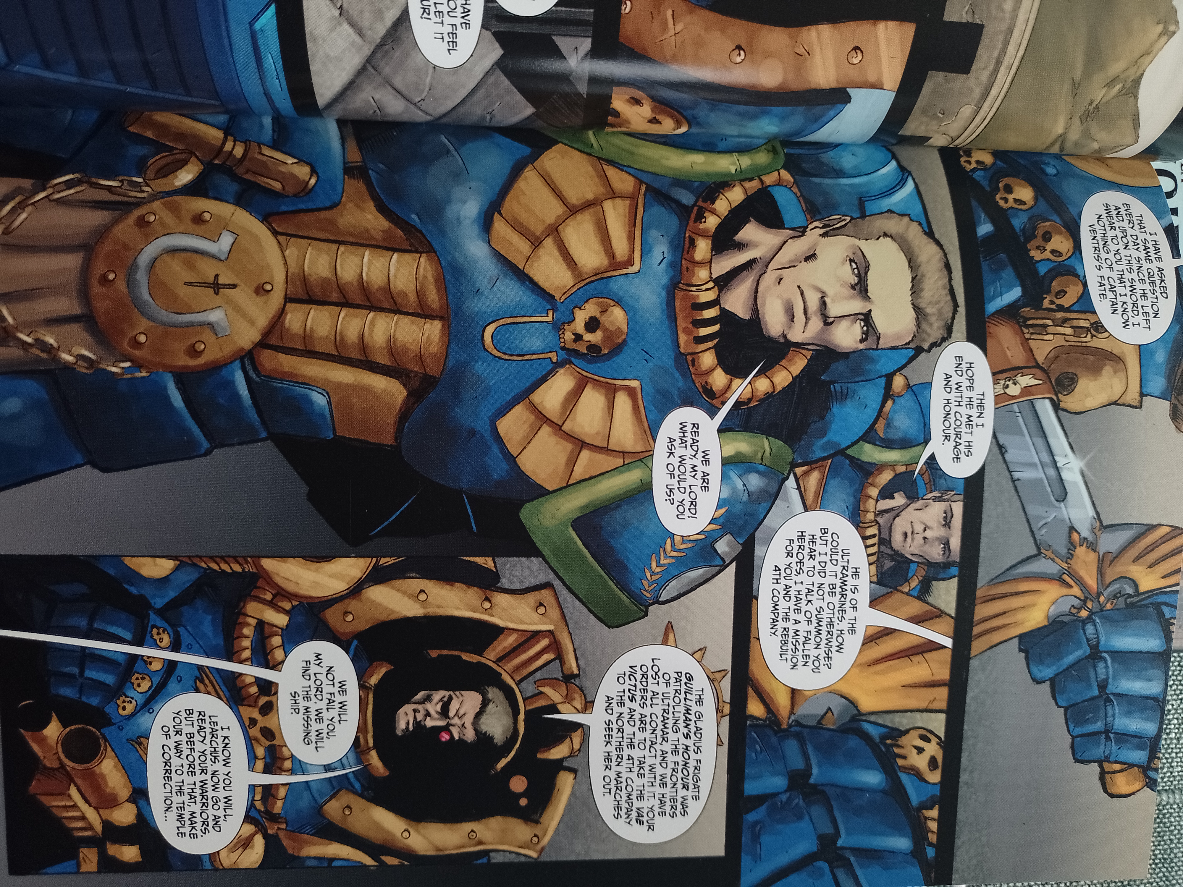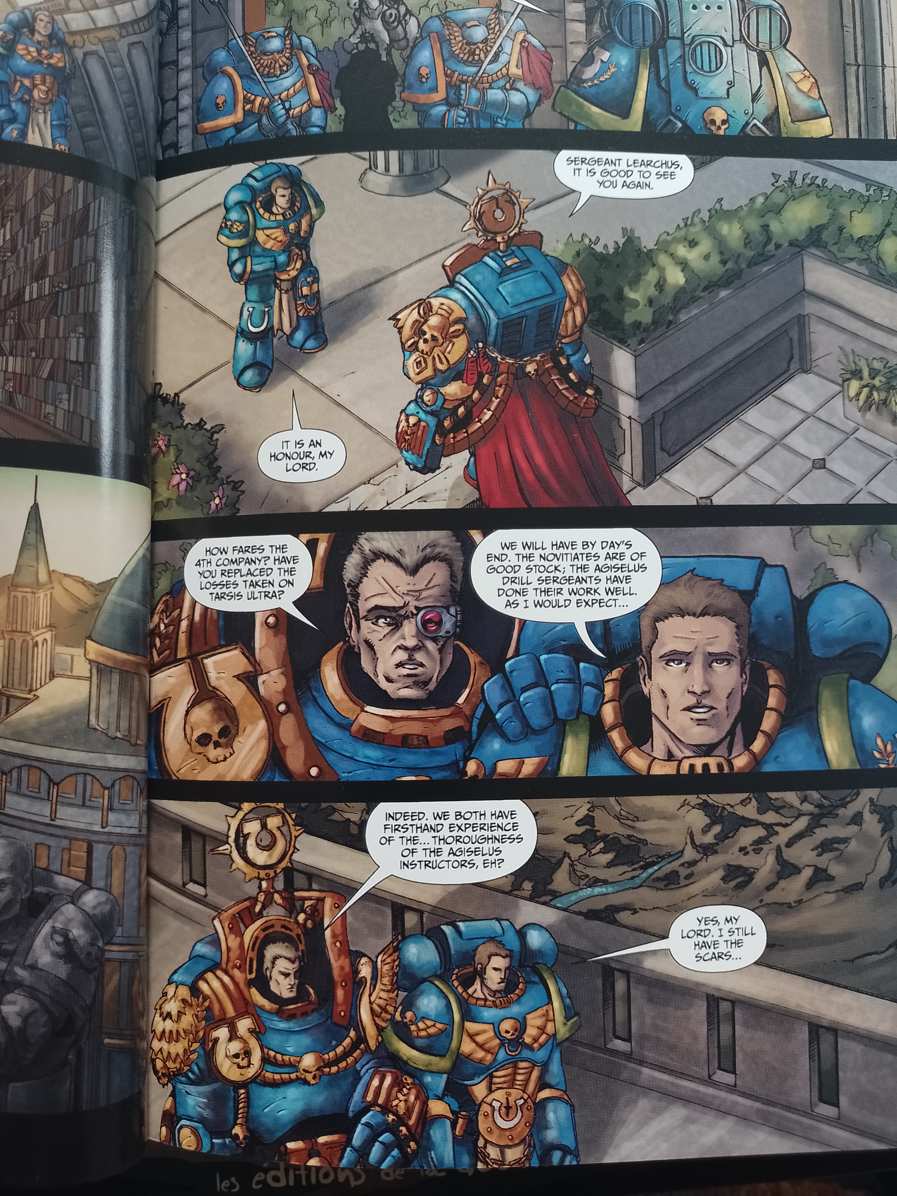 Tout cela c’est l’intro du comics, l’action va se dérouler autour de la mission qui sera confié à Learchus : retrouver la trace d’un vaisseau ultramarine qui ne répond plus depuis un certains temps.