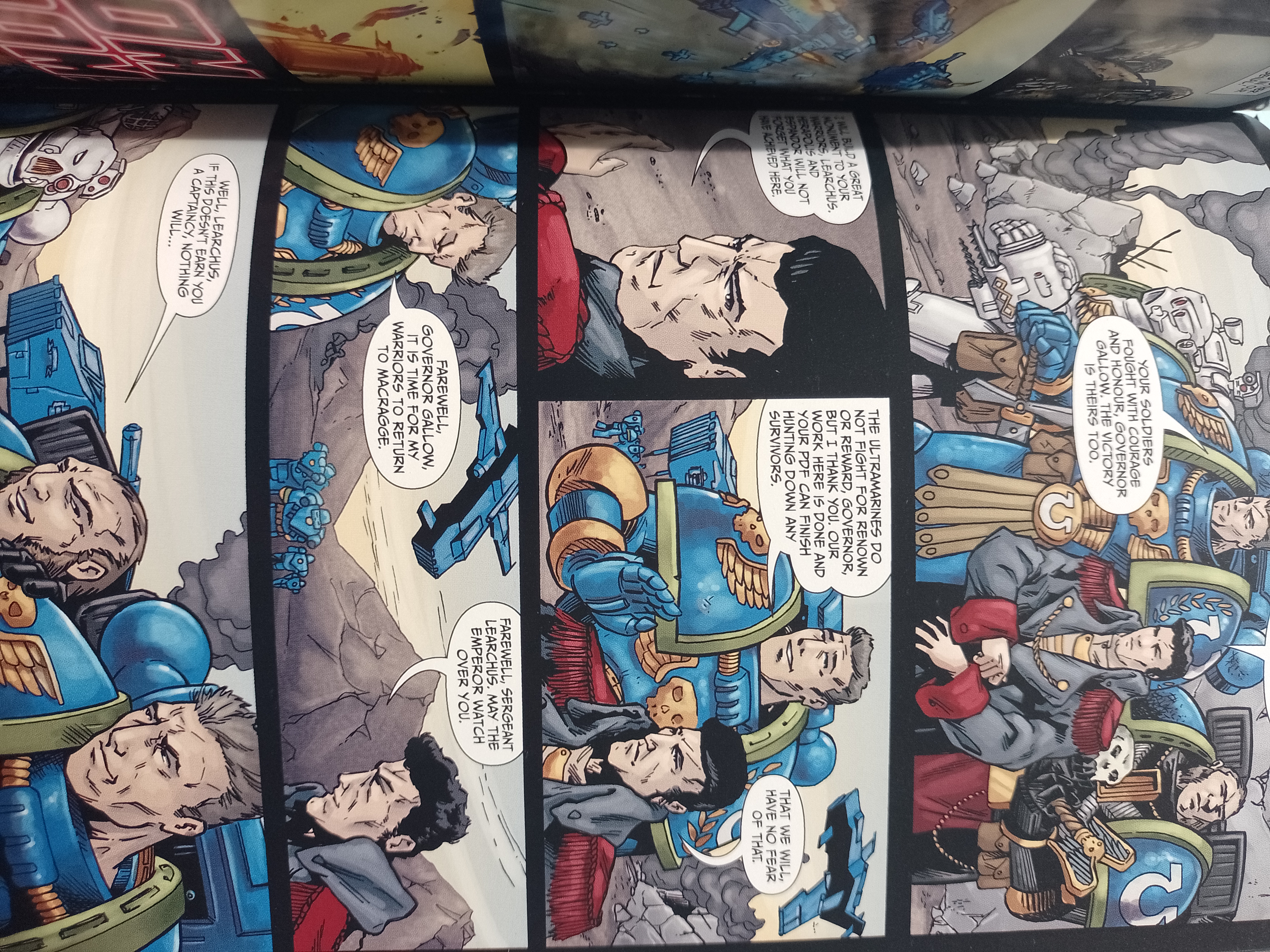 Après je garde quand même une affection pour ce comics parce que j’apprécie la volonté de Mc Neil de faire une petite histoire sur Learchus en dehors de la série et de montrer ce qui se passe pour la 4ème compagnie en l’absence de son capitaine. Je n’ai pas passé un mauvais moment mais j’étais juste un peu déçu par certaines pages.