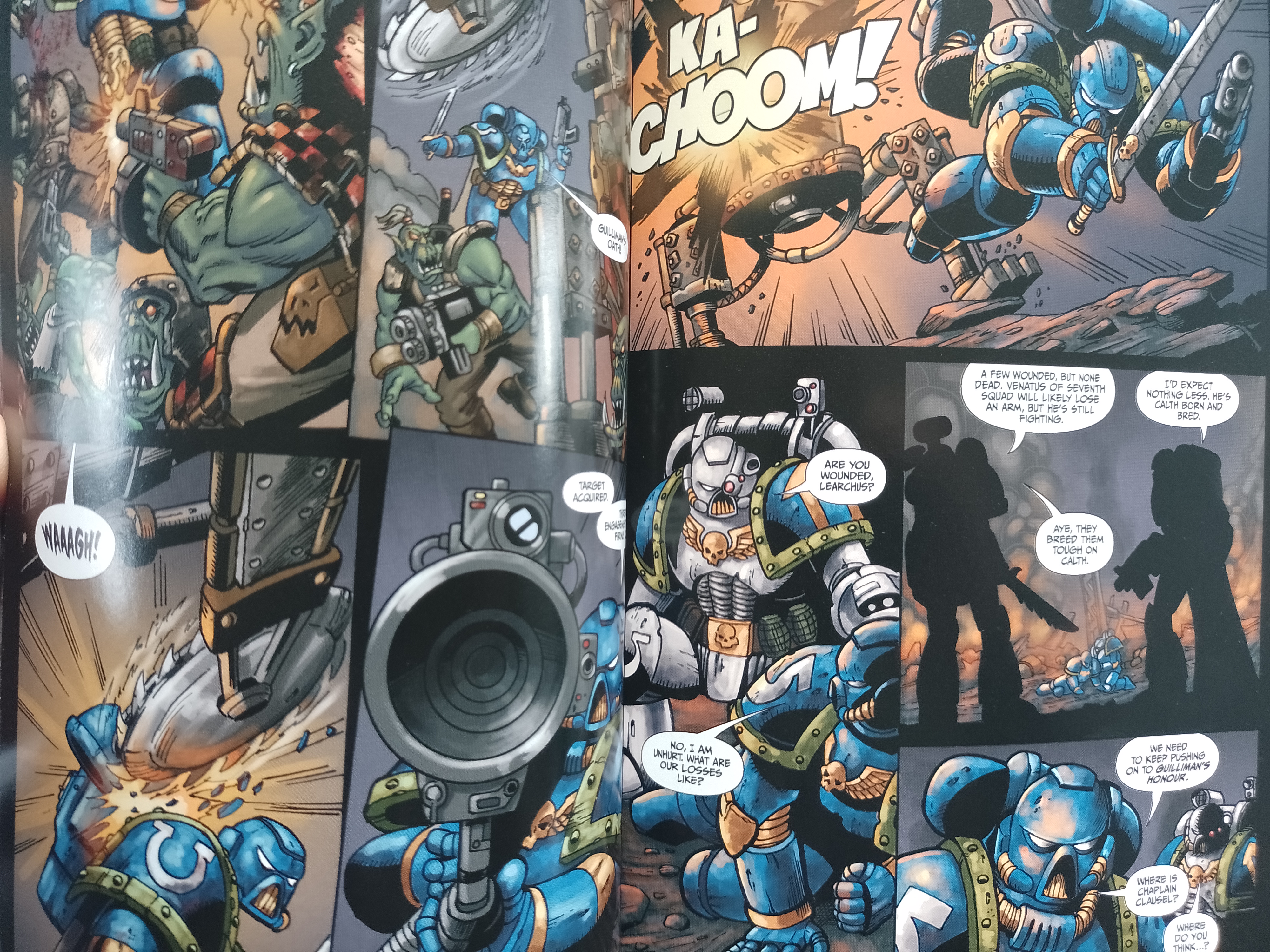 Et puis je ne peux pas m’empêcher de trouver que c’est un peu fainéant que les adversaires soient des Orks, c’est un peu l’ennemi par défaut, j’aurais apprécié voir un autre adversaire. Après si je ne dis pas de bêtises, il n’y avait pas eu d’Ork dans la série de Ventris jusqu’à ce comics donc peut être que Mc Neil à voulu remédier à ça.